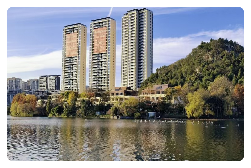 2016年建设,坐落于观山湖区与白云区两区交汇处的泉湖湖芯板块,与泉湖无界共生,重构一座城市的湖居理想。项目采用正南北式的独特布局,绿化率高达40%,让每栋住宅正面瞰湖,真正实现“户户有景,家家赏湖”。建面约121-140㎡湖景华宅,均已完美交付。